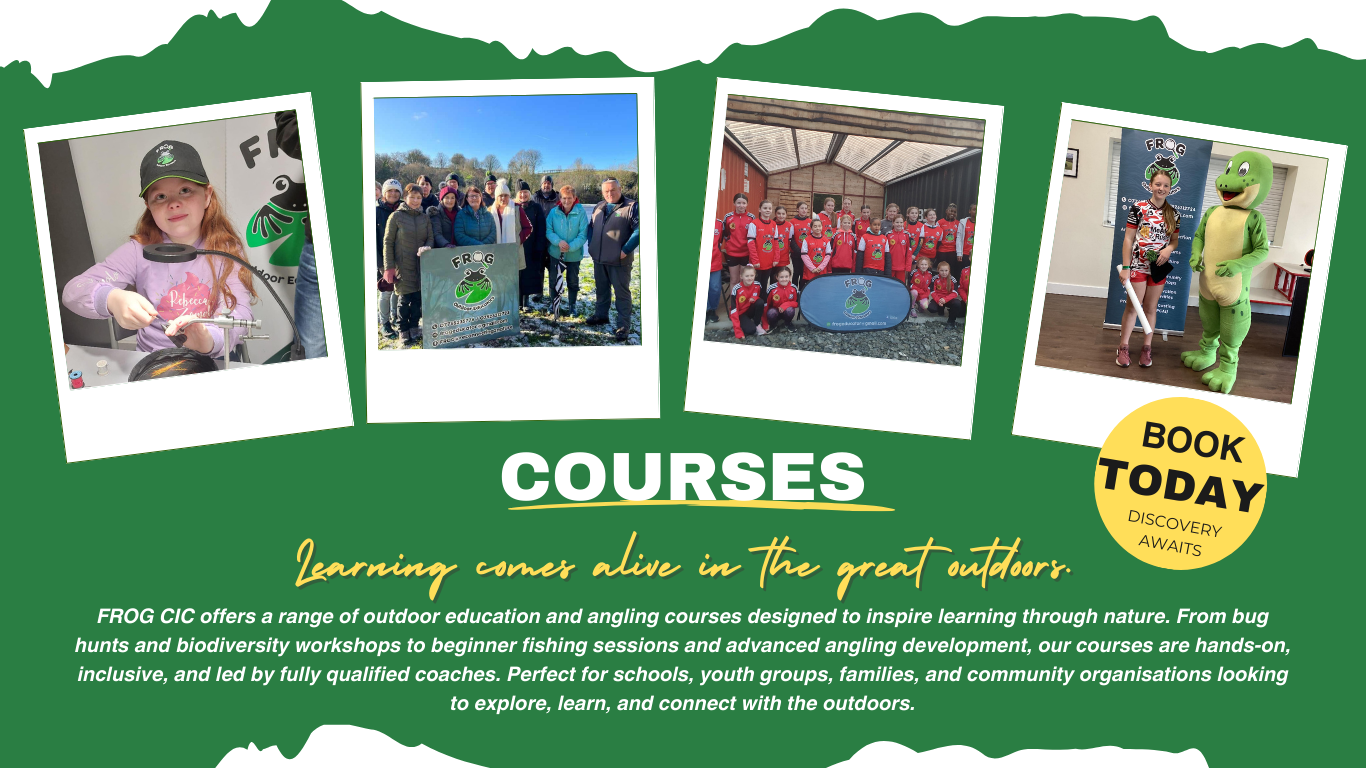 Ready to experience the great outdoors with FROG CIC? Whether you’re a school, youth group, or community organization, our engaging workshops and courses are designed to educate, inspire, and reconnect you with nature. From environmental education and youth angling sessions to inclusive outdoor activities, we have something for everyone.